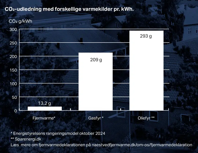 Vi udleder 33 g CO2 pr. kWh. Det er 84% mindre end et naturgasfyr.